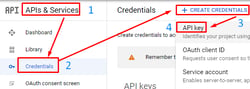 Create Google Map API key – Click “Credentials” option under APIs & services. Click “Create Credentials” and select API key. See as below.