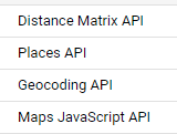 Distance Matrix API, Place API, Geocoding API and Map JavaScript API.