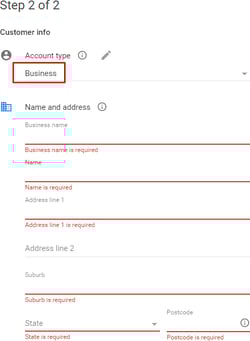 Choose Account type to “BUSINESS” and fill up complimentary details and Credit card information.