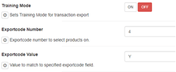 Set training mode to ON, Exportcode Number to 4, and Exportcode Value to Y. If in the Bepoz system, you needed to use a different Exportcode, then use that number instead of 4, but 4 is the recommended option.