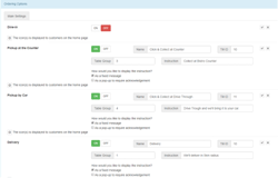 should be setup with different table groups. Later you will need to add these table groups to all the tills where orders can be collected or dispatched from. Dine In in Your Order Lite is to remain off. The customers have not paid for this feature. See image.