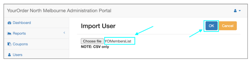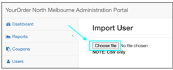 From User's section in YourOrder Admin Back panel, click ‘Import User’ button, followed by the Choose file button, Select the file and click open and lastly click OK to import the list.