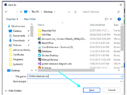 3- When the window opens to pick a directory for saving the file, the operator can name the file something simple, e.g, MemberList.csv and choose the preferred destination. Somewhere that’s easy to find is suggested, like the Desktop folder. The Save button should be clicked once a destination is decided upon.