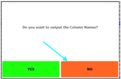 4- A window will display asking the operator if they wish to output the Column Names (Column Headers) as well. It is recommended that the operator selects the ‘No’ option as the new column headers will need to be entered in manually.