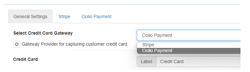 · Select Credit Card Gateway – Change Stripe -> “Oolio Payment”