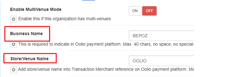 Business name” and “Store/venue name” two fields, don’t use default “bepoz and Oolio”, if it is Single venue, put the business and store name is SAME name; If it is Multivenue, need to put business group name and individual venue name, e.g. business name: Dosa Hut and venue name: Clayton