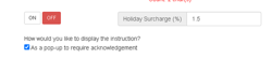 NOTE: you can also rename “Holiday surcharge” label from Setting->Branding section