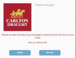 Age Restriction on Alcoholic Items – Asks users a YES/NO prompt to confirm their eligibility to buy alcohol when the first alcoholic item is selected on the YourOrder menu. The selected answer will be recorded on the Transaction history.