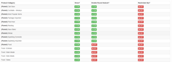 Products that can be featured on round drink prompts are also set in the back panel. Click the menu/suggestion list on the left side of the back panel dashboard. In this window, choose and double left-click a menu on the menu list or create a new one by clicking ”Add” in the top right corner of the panel. A window will open and show a product category list. In the column ”Enable Round feature?”, users can enable each product category by clicking the button in the column and desired category row. If “show?” is disabled on any categories then the round feature will also disable automatically when the menu is saved.