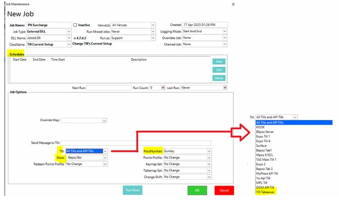Surcharges, Scheduled Job is best use for newer Bepoz version where API Tills are