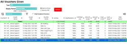 In Marketing reports, information on issued vouchers are reported. Clicking “Marketing Reports” on the left side will expand the panel. Click “View Vouchers issued” to display all vouchers given in a time period or “Voucher Summary page”, for information on each voucher issued.